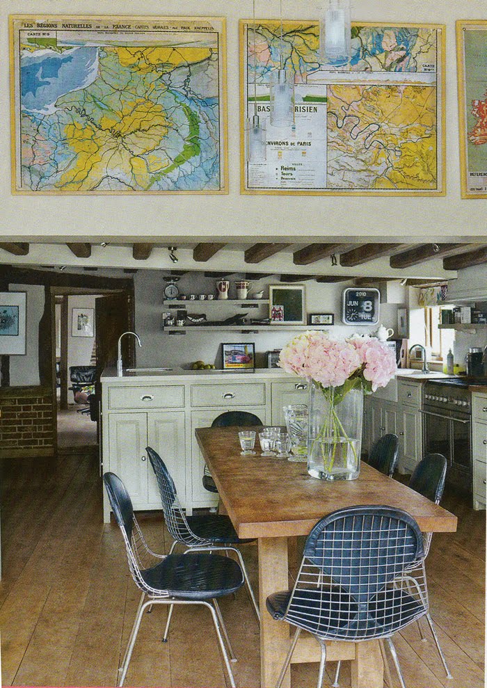 Két étkezőn is megakadt a szemem. Az egyiken az eames-ék féle drótszék és rusztikus környezetének stíluskavalkádja miatt: