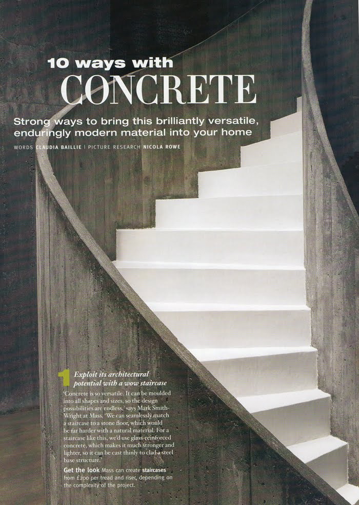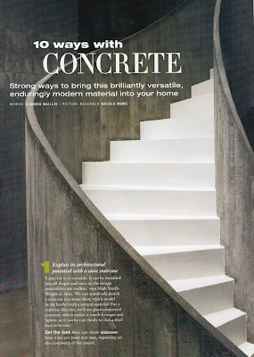 Klassz kis összeállítást találhatunk arról, mi minden készülhet betonból. Nagyon szépnek találom ezt a fehérre festett, nyers beton lépcsőt.