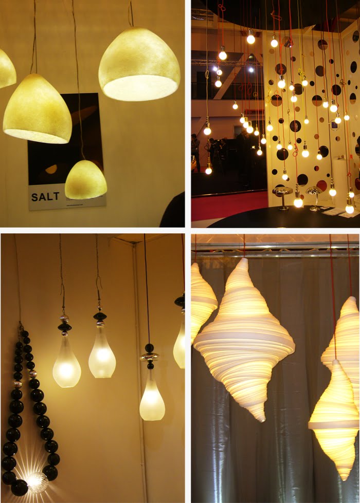 Lámpáknál maradva, összegyűjtöttem néhány kedvencemet. Bal felül Roberto Tweraser sóból készült függesztékei, alatta pedig Penelope Batley "Light Humour"-ja, amely többek közt fülbevaló és nyaklánc lámpákat takar. Lámpából még bírtam a francia