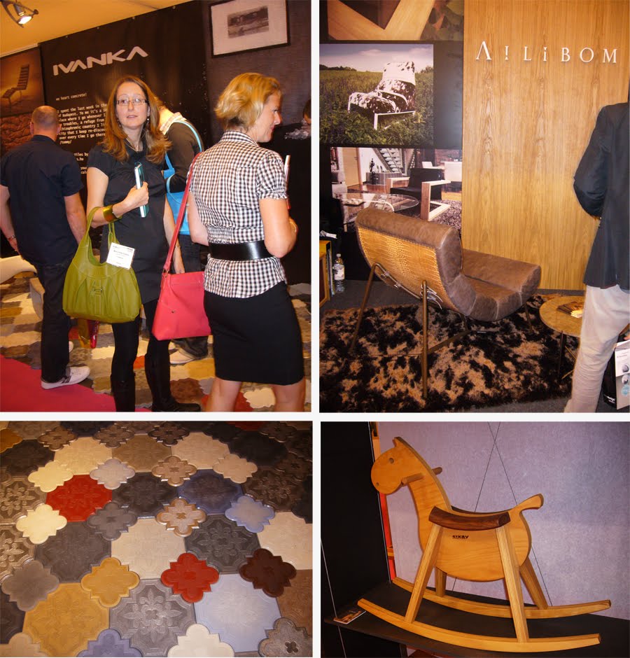 Örömmel találkoztam magyarokkal is, bár - jellemzően - nem sikerült az egységes bemutatkozás. Három kiállító egymás mellett, kapcsolat és koncepció nélkül. Imádott Ivanka betonomnak volt a legnagyobb sikere, de szomorúan láttam, hogy a környéken töltött háromnegyed óra alatt gazdátlan volt a stand. A lelkes érdeklődőket addig én világosítottam fel, hogy a szépséges burkolat betonból készül (bal alsó-felső kép), és az ott talált szórólapokat is buzgón osztogattam...:)