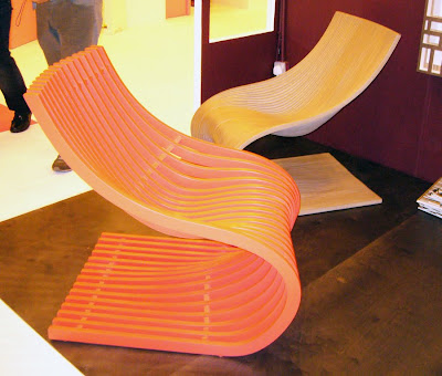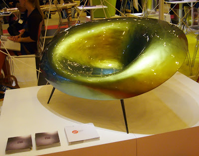A fiatal olaszok bemutatkozása is profizmusra vallott, minden kiállított darab mellett kis asztal és két szék, amelynél rögtön meg is lehetett beszélni a termékek jellemzőit (és forgalmazását - gondolom én). A nido egy csillogó zöld fotel az