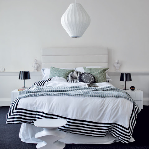 Megmondanátok erről a hálószobáról, hogy kis költségvetésből készült? A mutatós lámpa és az éjjeliszekrények is az IKEA-ból érkeztek.