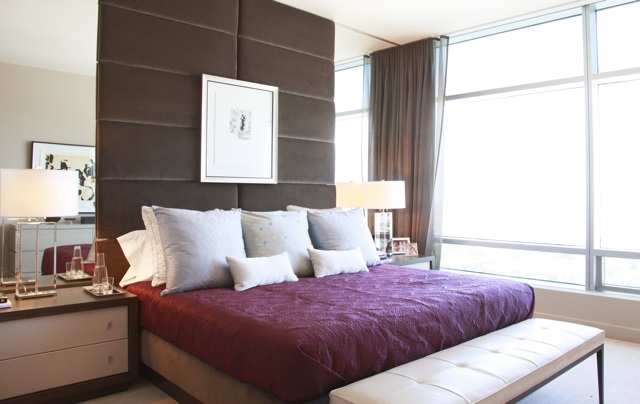 Az is mutatós, amikor az éjjeliszekrény mögött is folytatódik a kárpitozott ágyvég.