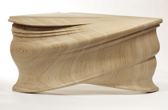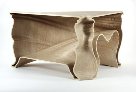 Jeroen Verhoeven először Industrialized Wood, majd Cinderella névre keresztelt asztala diplomamunka volt. Tervezője azt szerette volna bizonyítani vele, hogy a tömegtermelési eljárások egyedi tárgyak létrehozására is alkalmasak. Két antik tálalóasztal profiljának lerajzolásával kezdte a munkát, az egyiknek az elejéről, a másiknak az oldaláról készített vázlatokat, amelyeket ezután betápláltak a számítógépbe, amely egy speciális szoftver segítségével egyesítette a két alakzatot, és létrehozta a kettő kombinációjából kialakuló virtuális háromdimenziós formát. Az áramló vonalakkal határolt alakzatot ezután a hagyományos kézművestechnika és a korszerű gyártási eljárások egyesítésével ültették át az anyagba: a számítógépes modellt 57 vékony rétegre bontva értelmezték a gép számára, amely rétegelt lemezből egyenként szabta ki a részeket. A szeletek összeragasztásával alakult ki a 120x75x80 cm befoglaló méretű, szilárd szerkezetű bútordarab. A kívánt felületet hosszadalmas kézi csiszolással alakították ki. Az asztal limitált mennyiségben került a piacra.