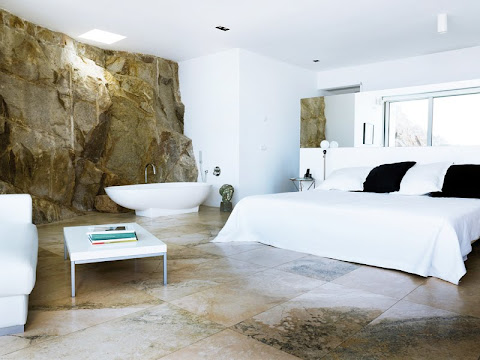 Mátyás ezt a hétvégét egy olyan spanyol otthonban tölti, amely - szerintem - elég népszerű lesz...:) Én legalábbis sok mindent megadnék azért, hogy egy szikla legyen a hálóm egyik fala, mellette ezzel a hatalmas káddal...