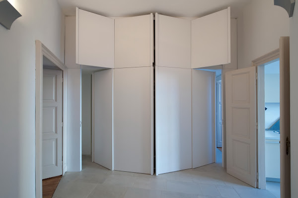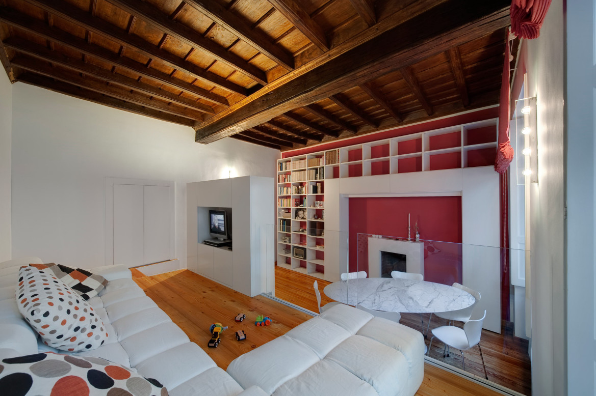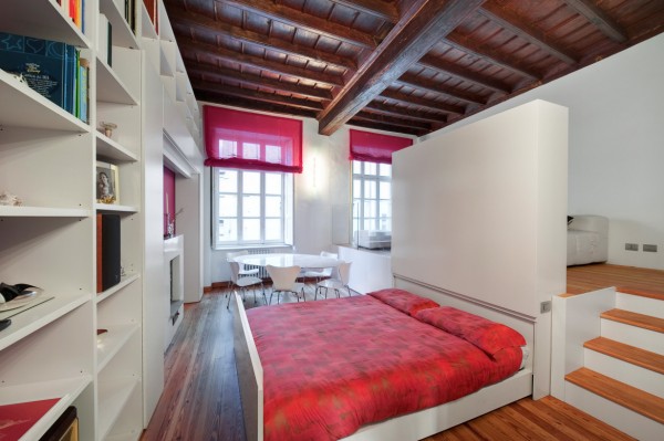 Miután elköltözni nem akartak, az olasz házaspár számára természetes volt, hogy az egyetlen hálószobát az új jövevény kapja. Saját éjszakai rezidenciájukat a nappaliba helyezték át, mégpedig azzal a zseniális ötlettel, hogy dobogóra emelték a pihenés szféráját (a kanapét és a tévét), és ez alól húzható ki az ágy.