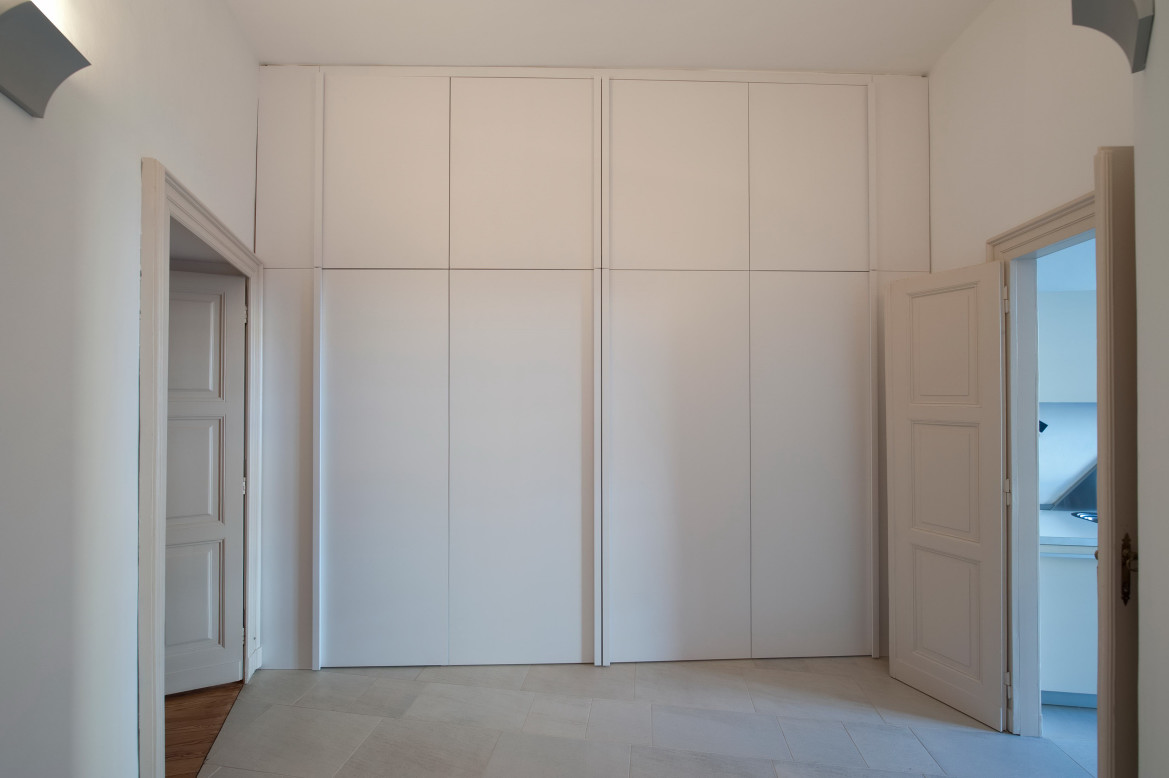 A gardrób a hall közepén állva osztja ketté a teret.