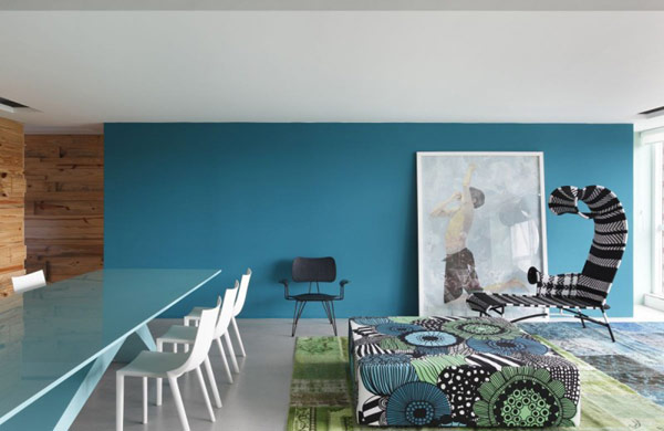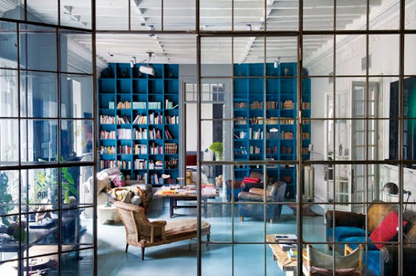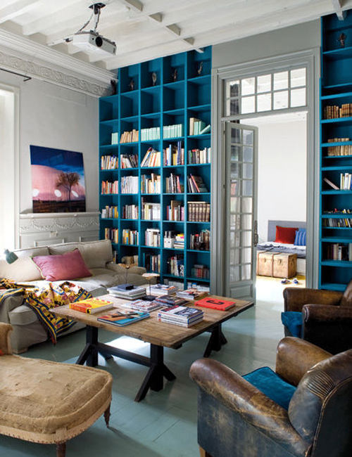 Az egész falas könyvespolcok nagyon mutatós elemei lehetnek a lakásnak, ha jól meg vannak tervezve. Legtöbbször nem kell semmi mást tenni, mint egyszerű, letisztult formavilágú és arányos osztású szerkezetet készíttetni a falra, a könyvek össze-visszasága úgyis beleviszi a balhét. Persze tuningolhatunk még rajta, ha bevállalósak vagyunk, például színben, hogy nekünk is legyen ilyen lehengerlően gyönyörű, kék falunk...