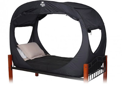 Olyan nagyon esztétikusnak nem mondanám, mégis őrült jó ötlet az ágyba helyezhető mini sátor. A Privacy Pop-ot tervezői kollégiumokba, közös gyerekszobába tervezték, azaz olyan helyekre, ahol több olyan ember kénytelen együtt élni, akik vágynak egy kis privát szférára.
