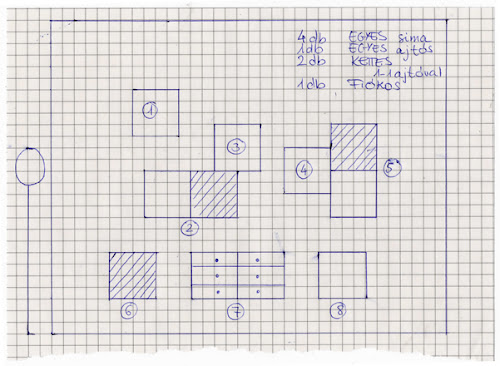 Menjünk végig gyorsan, miképpen lehet elkészíttetni a nekünk megfelelő polcos tárolót. Ehhez első körben megrajzoltam az egyes elemek vázlatát. Miután a blog háromszor közölte, hogy rossz képet próbálok felrakni (pdf-et...), rájöttem, hogy jpg formátumra kell átalakítanom a képet, így viszont már nem érvényes az 1:20-hoz méretarány, de ez most nem is lényeg.