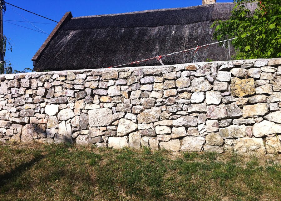 Múlt hétvégén a Balaton-felvidéken jártunk, ahol a telefonommal fotóztam párat. Olyan dolgokat, amik a pajta-projekttel kapcsolatban érdekesek lehetnek nekünk. Így került képbe sok-sok (majdnem) száraz rakású kőfal. Például az örvényesi Árpád-kori templomrom oromfala.