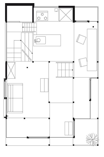 A megvalósítás ugyan még odébb van, a bőrömből kibújni nem tudok, szóval készítettem már terveket a saját pajtánkra is... :) Bár a stílust jóval rusztikusabbra szánom - sok hasonlóság lesz ezzel a házzal. Én is galéria alá passzintom be a konyhát, nálunk is szekrénynek lesz beépítve az egyik lépcső alatti tér, és lesznek fehér falak.