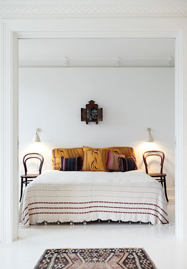Két szép vonalú - akár Thonet - szék pont megteszi ágy melletti lerakodó asztalnak. Az ötlet tervezőket is megihletett, a "My Bedside Chair" például Lewis Taylor nevéhez fűződik.