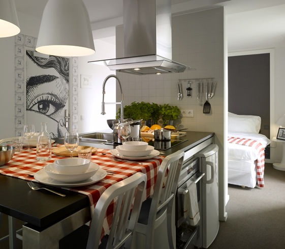Ebben az esetben a dizájn remekül működik, és - legalábbis a képek tanúsága szerint - nem érződik zsúfoltnak az amúgy kis lakás. Na ide szívesen mennék...