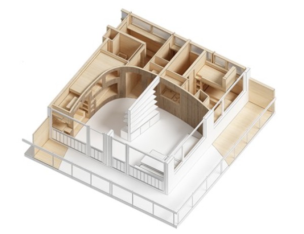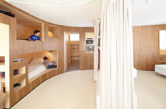 Az eredetileg 1964-ben megépített, 55 m2-es apartmanban 8 hálóhelyet és két fürdőszobát sikerült kialakítani a párizsi székhelyű h2o Architectsnek.