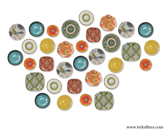 Kerestem a neten megfelelően színes, nagy tányérokat, körbevágtam, megfelelő méretre húztam - hogy ne legyen pixeles, egy filterrel "festményesítettem" őket, kiszedtem belőlük a csúnya vaku fényeket, és kaptak árnyékot is.