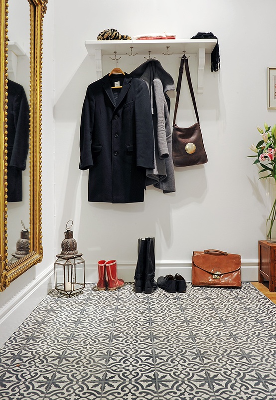 Előszoba: Már kacérkodok egy ideje a pepita gondolatával, és nagyon menő szerintem is, nem tudom bevállalom-e, vagy a férjem gyomra beveszi-e:D De a MOZA szuper! Ez a kép, a cementlapos előszobával, az egyik kedvencem, már fennt is van a moodboard-omon...valami teljesen hasonlóra gondoltam:)