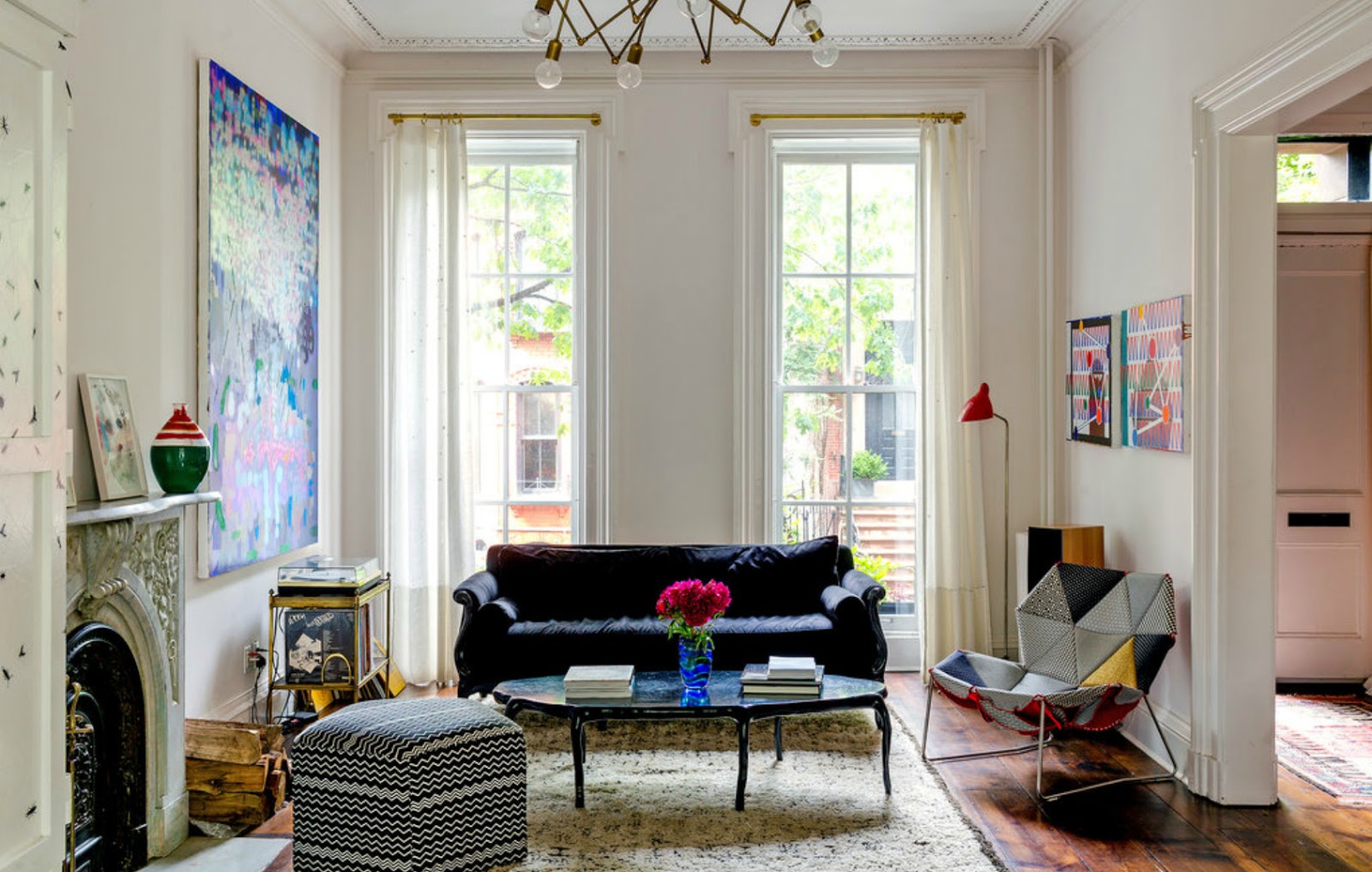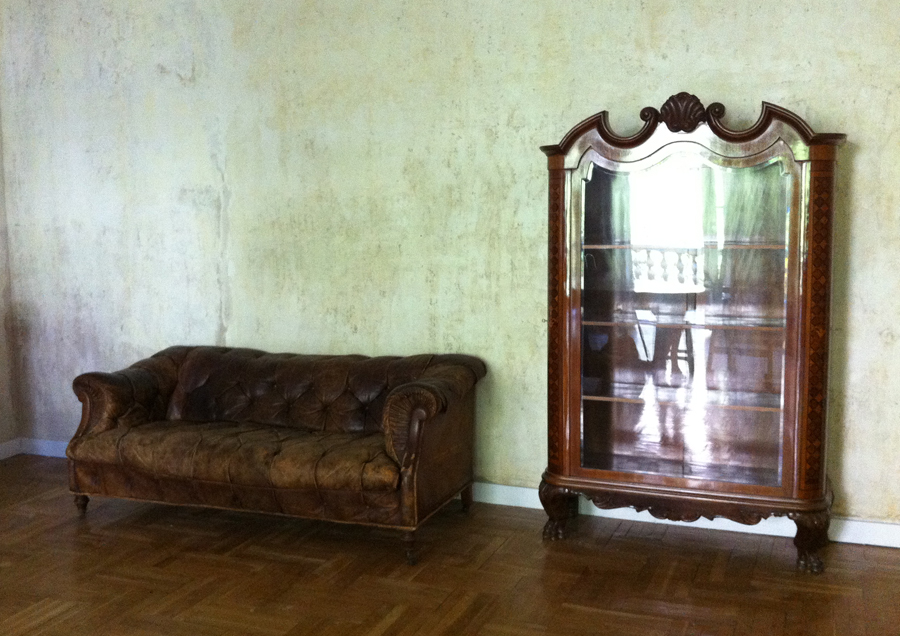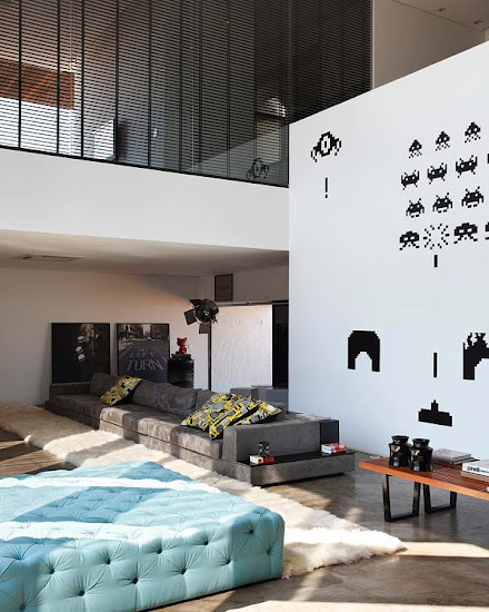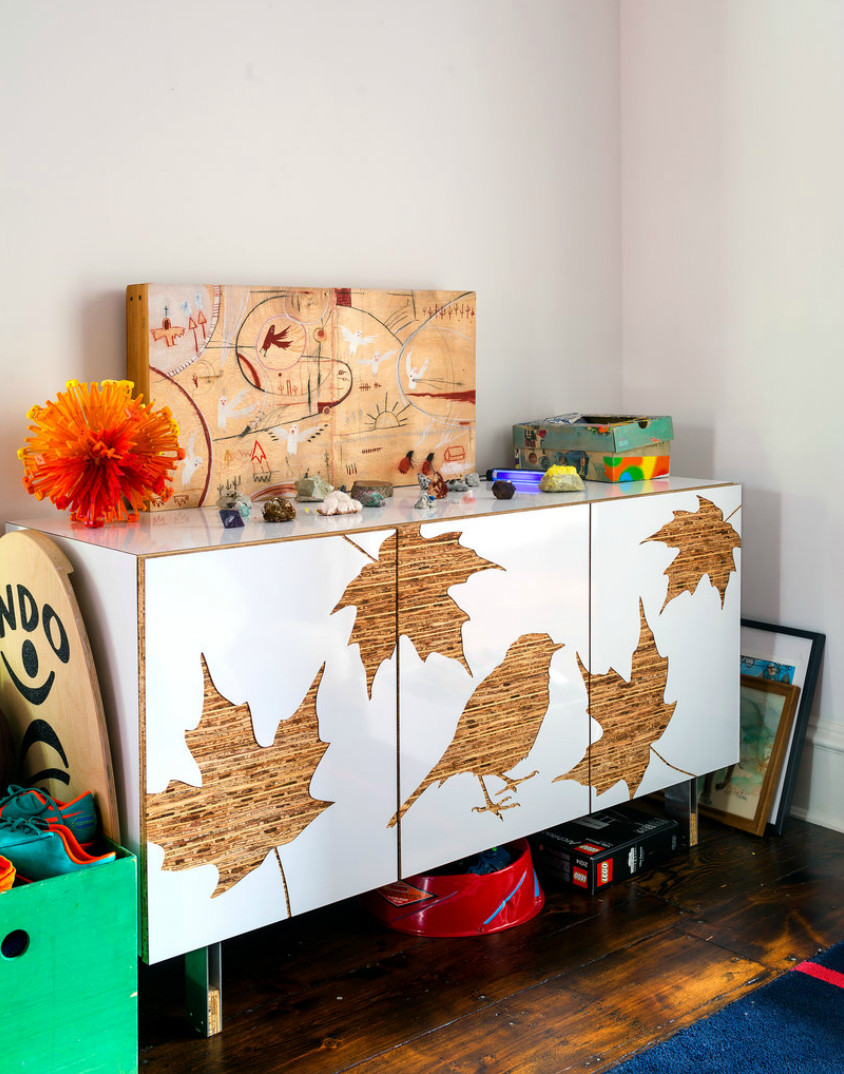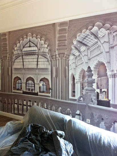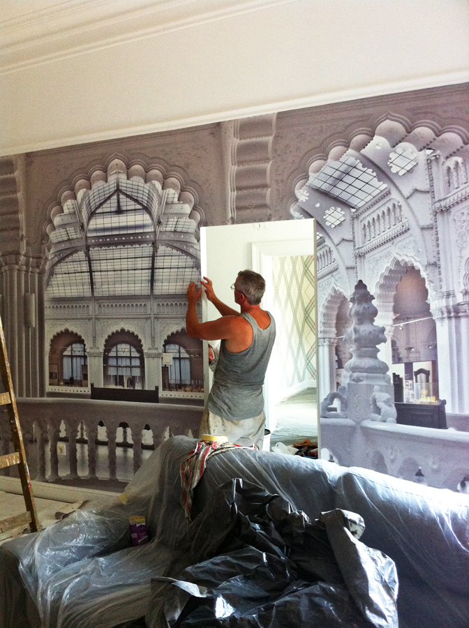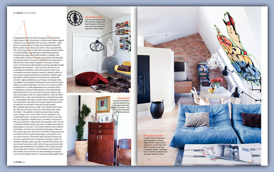 Amikor a lakást terveztem, arra gondoltam, kéne valamilyen ütős látványelem, valami nagyon meghökkentő. Egyszerre csak beugrott, hogy milyen jó volna ide vizionálni az Iparművészeti Múzeumot tapéta formájában. Keresgéltem képeket a neten, felhívtam egy-két fotóst, de senki nem tudott megfelelő felbontásban rendelkezésemre bocsátani egyet.