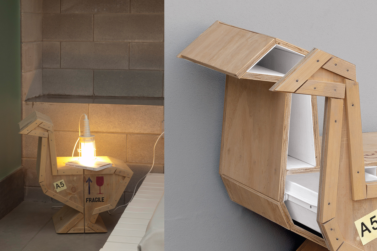 A nappaliból tapétaajtón lehet bejutni a dolgozó-háló-gardrób privát szférába.