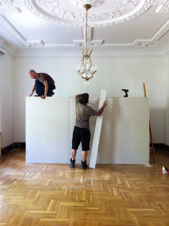 Ma - az éppen futó projektembe - bekerült az egyedi gyártatású tapéta is. Találós kérdés: hol itt az ajtó? :)