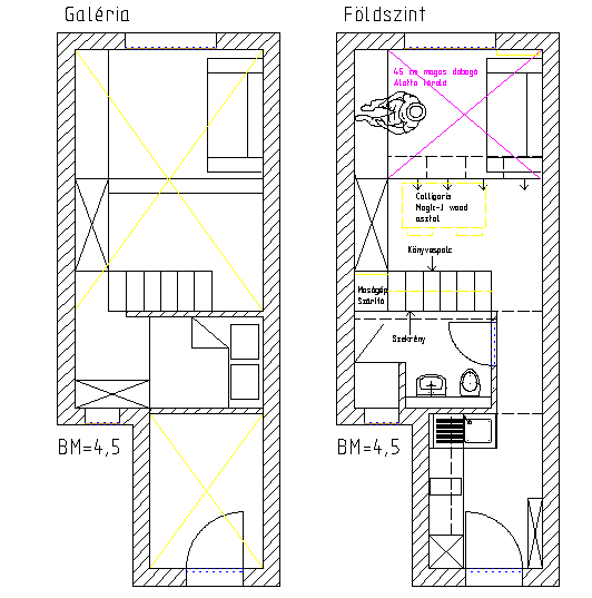 Találtam is egy kis lakást (5 millióért már talán meg is szerezhetném), ami minden szempontból ideális lenne nekem (belvárosi, csendes, világos, nagy belmagasságú, azaz galériázható), de mégsem vagyok biztos a dolgomban. Rajzolgatok, de nem igazán tudom, hogy lehetne megoldani a következő problémákat. Sokszor dolgozom otthonról, kellene ehhez egy viszonylag széles íróasztal, és sok könyvem is van. Gyakran alszanak nálam vendégek, ezért mindenképpen kihúzható kanapét szeretnék. Sokszor nézünk dvd-t. Tele vagyok elpakolandó dolgokkal: sílécek, wakeboard, stb, ezeknek talán tároló galériát kéne kialakítani. És persze lány vagyok, szóval van egy csomó ruhám is :-)