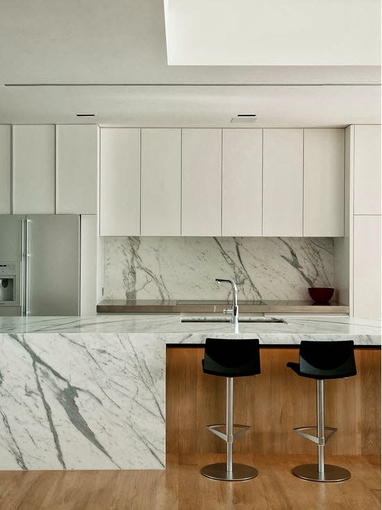 A szakirodalom, de egyik felelősségteljes konyhastúdió se ajánlja a márványt konyhapultnak. Elég kényes kőről beszélünk, amely könnyen megadja magát savas anyagoknak, ezzel pedig egy konyhapult gyakran találkozik (elég, ha a vörösbort, vagy citromot említem, amelyek csúnya foltokban emlékeztetnek később a találkozásra). Még is gyakran találkozni vele magazinok hasábjain, de vajon miért?