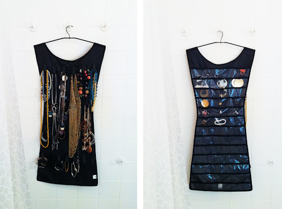 Az előbb mégsem mondtam igazat... A legnagyobb okosság itt lóg nálunk, ezt már nem lehetett ott hagyni! Vállfás ékszertartó: a tépőzáras hurkoknak köszönhetően végre átlátom a bizsu káoszt, és az óráim is mindig szem előtt vannak. Az áttetsző műanyag fachok a másik oldalon pedig pont a fülbevalóknak és gyűrűknek lettek kitalálva. Mint látjátok, még nem ürítettem ki az összes ékszeres ládikát...