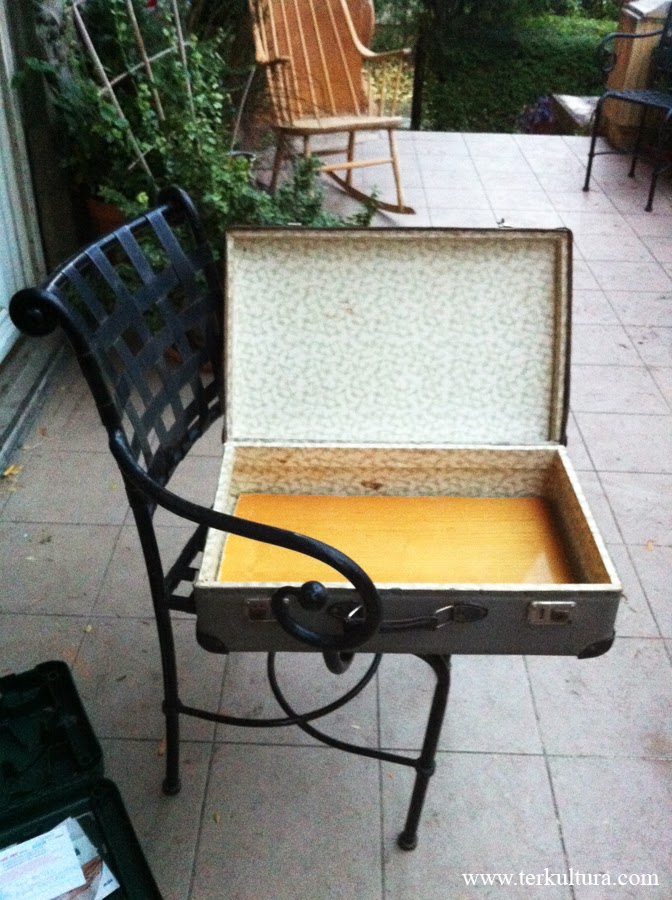 De lefestettem a belső asztallapot is, hogy a kevésbé publikus dolgok is méltó helyt kapjanak... :) Így akár nyitott fedéllel is használható a koffer.
