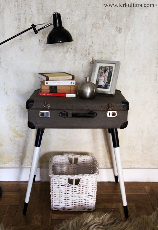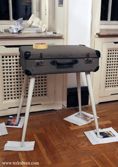 Aztán valahol belebotlottam egy fotóba, és azonnal tudtam, determinálódott a kis koffer sorsa: éjjeliszekrény lesz belőle! Vagy lerakodó asztal. Egyszóval lábakon fog állni.