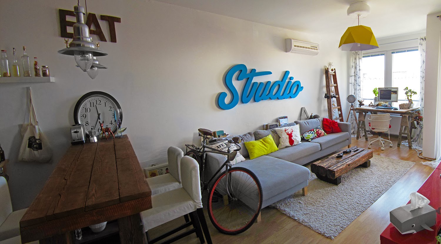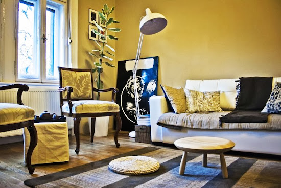 2. Ütős modern-vintage. Ebben a lakásban minden benne van, amitől ma menőnek számíthat. 3D felirat, gerenda asztal, sárga lámpa, régi létra, és még sorolhatnám. Nagggggyon menő!!! :)