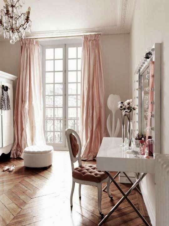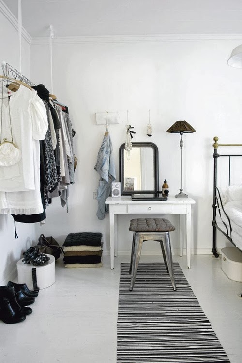 Az is jó ötlet, hogy az ágy mellé - éjjeliszekrény helyett - smink asztal kerül: két legyet egy csapásra.