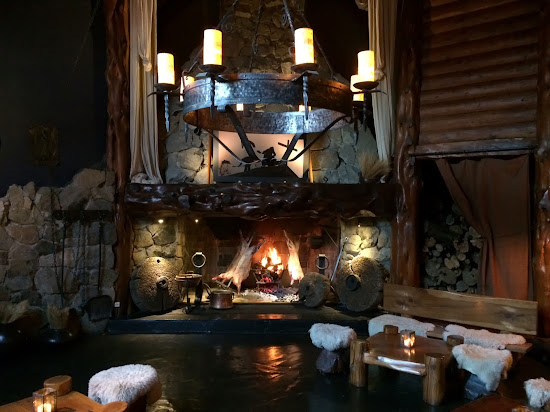 Az étterem hangulata meglehetősen rusztikus.