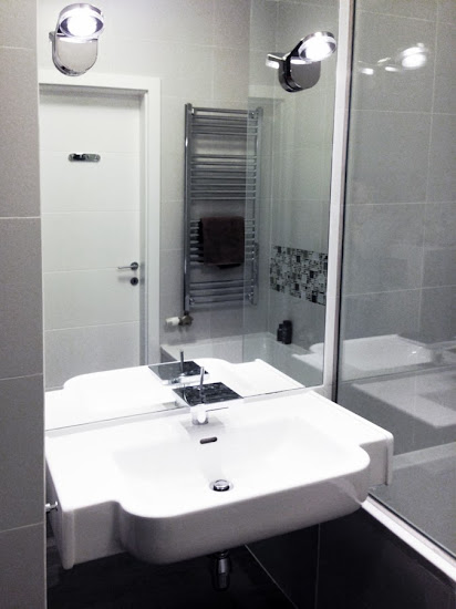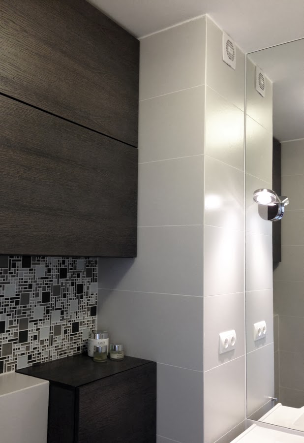 A fürdőszobában is (a tervekről készült poszt ITT) egyszerűek és modernek maradtunk, a helyiség apró méretei azért behatárolták a lehetőségeket. Bár aki ide belép, annak nem az fog elsőre eszébe jutni, hogy "hű, de kicsi"… :)… Kivéve, ha az illető fotózni szeretne…. Mert annak nincs egyszerű dolga. :)