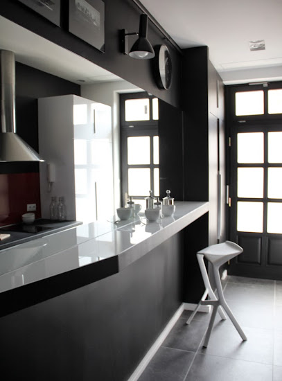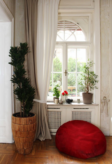 Persze ízlés kérdése, hogy bejön-e ez a két színű változat, anyám szerint például tök béna, én viszont már régóta szemeztem a megoldással, és imádom a végeredményt. De bevallom, ha nem kötnék kezemet az anyagiak, mást csináltam volna. Imádom például keverni a bársonyt a lenvászonnal. Kívülre jó súlyos bársonyfüggönyt raknék, mellé pedig könnyed lenvásznat. És nagyon sűrűn. De ez egy másik sztori lesz, egy másik helyen... :)