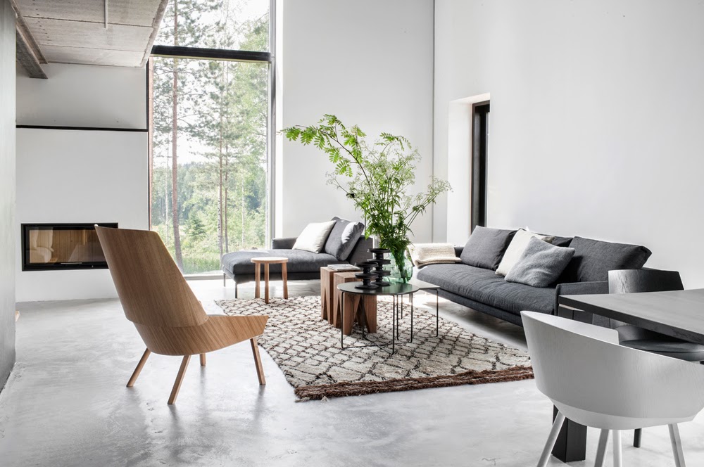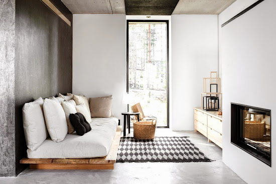 Ami legelőször eszembe jutott a leveled kapcsán (minimál ház, cementlapos játékosság, kis vastagság, melegség érzet) az egy speciális, szőtt vinyl (műanyag) burkolat, amelyet a svéd Bolon gyárt, és amelynek legújabb kollekcióját idén is fájó szívvel nézegettem Milánóban, mivel már jó sok éve várok egy olyan megbízásra, ahova betervezhetném. :) Mert ez a szuper burkolat nem csak a legmenőbb üzlethelyiségekben lehet mutatós, hanem bármely "egyszerű" otthon nappalijában is. Ha tetszenek a fenti képek, nézd meg a teljes kollekciót a Bolon weboldalán (ITT). Itthon keresgélve megtaláltam néhány cég kínálatában (itt, itt, és itt).