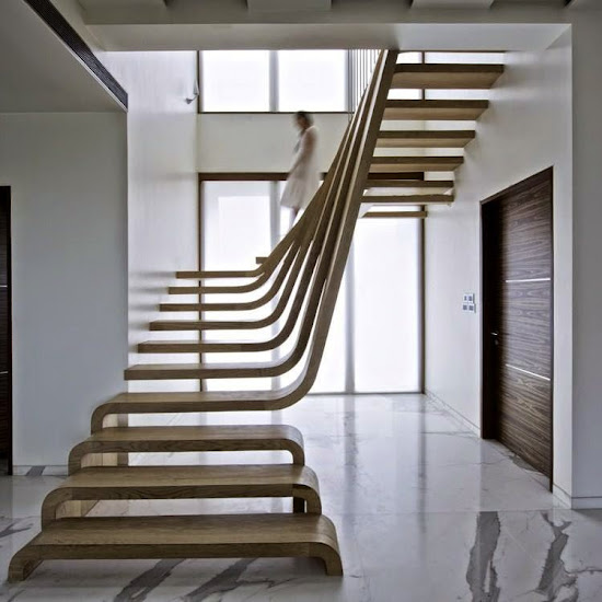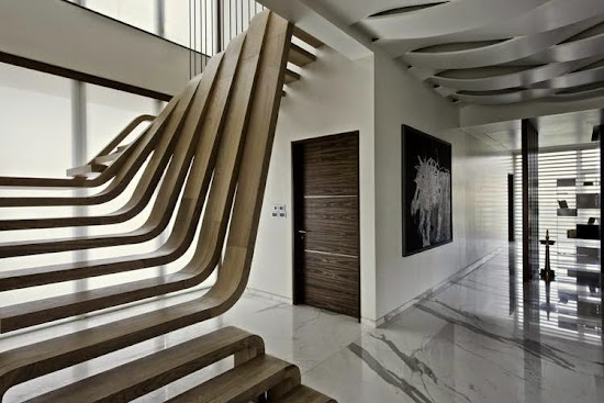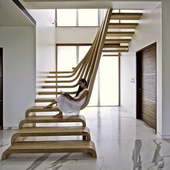 Egy kreatív tervező (és tőkeerős megrendelő...) együttműködésével egy lépcső nem egy szükséges rossz, hanem a lakás legfőbb látványeleme. Ez a lépcső annyira csodás, hogy szavakat nem találok rá.