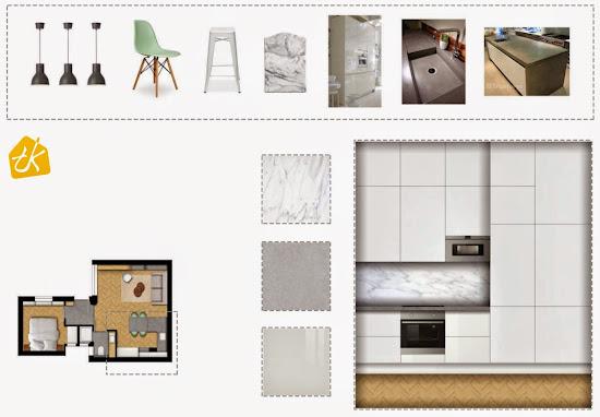 Nézzük például ezt a kis lakást, amelyen főleg Sátori Edit kolláganő dolgozik éppen most… Az alaprajzi szituációt, a kis finomságokat, az anyaghasználatot átbeszéltük és közösen alakítottuk, de a tablók, a finom részletek teljes egészében az ő munkái. Én ezt annyira tökéletesnek találom, hogy bármelyik pillanatban felvállalnám sajátként, így a legnagyobb örömmel mutatom be az ügyfélnek is.