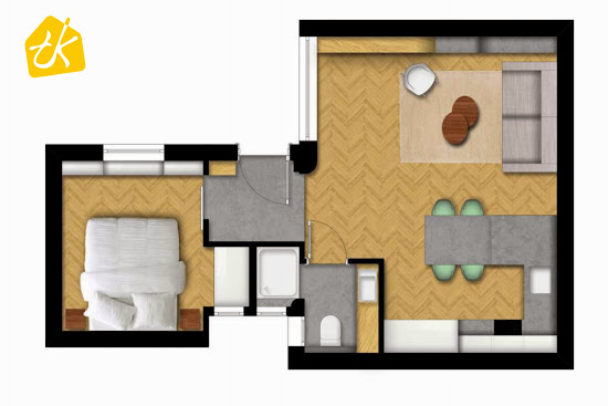 Ez első koncepciónk a kislakásra, amelyet igényes tulajdonosa hosszútávú bérbeadásra szán kifejezetten külföldiek számára.