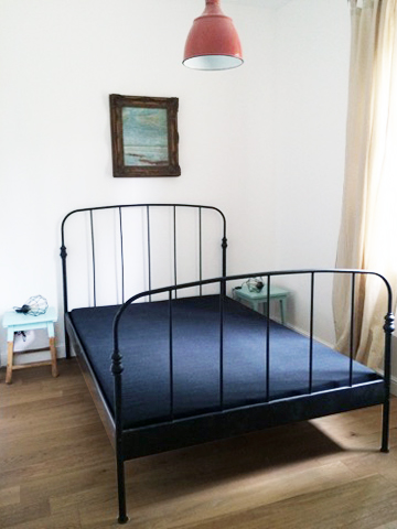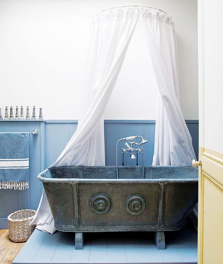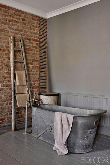 Szóval… A kád mögötti falat fel szeretném burkoltatni szeletelt téglával (szép fehéres fugával, kicsit összemaszatolva, hogy később a vízkő se zavarjon rajta túl sokat - de majd jól impregnáljuk is), a kád mellé vágatok tölgy pultból egy borítást, amit jó erősen beeresztek olajjal, ugyanezt ráteszem a sminkes asztalomra is, hogy meglegyen az összhang. A kád rúdját fekete kovácsoltvasra cserélem, és talán még a mosdó feletti tükör lesz fekete csarnokablakból. Meg új, dögösebb zuhanyfüggönyöket veszek, és kész is lesz a vadi új szuper fürdőnk.