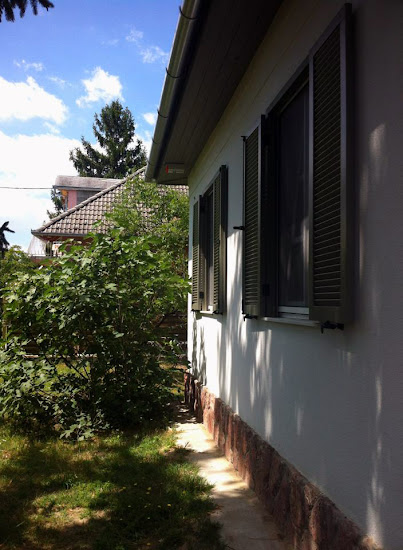 Az új zsalugátereknél mondjuk csaltam kicsit, nem tudtam ellenállni, hogy a régi, klasszik balaton-zöld szín helyett ne egy kicsit provence-osabb zöldet válasszak. Ezt egyébként nem, hogy nem bántam meg, sőt, imádom. Azóta a festő ide hordja a kuncsaftokat, hogy ilyet is tud, és már több helyen kenik a nyílászárókat… :)