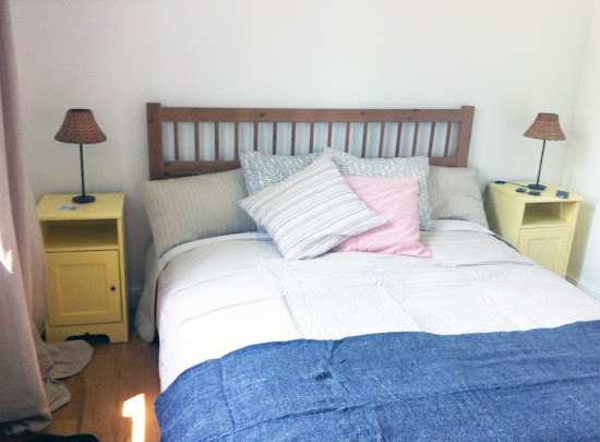A "Provence sárga" szoba is full Ikea, de ezek a bútorok már adottak voltak, néhány éve a tesómék vették ide őket. Azért kicsit tuningoltam rajta a sárgára festett éjjeliszekrényekkel és komóddal. Az ágy fölé még érkezik egy dögös kép...