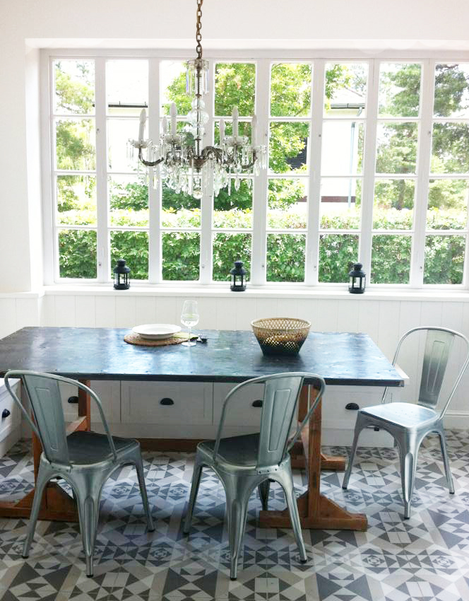 Az asztalt az ArtKrafttól hoztam, a székeket nem olyan régen posztoltam (Dublino), a csillárt pedig a neten lőttem, majd kicsit kipofoztattam. A fehér padot egyedileg gyártattam, és Ikeás fogantyúkat kapott.