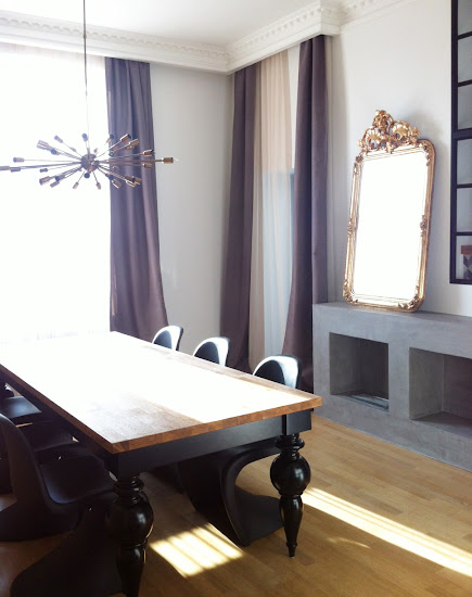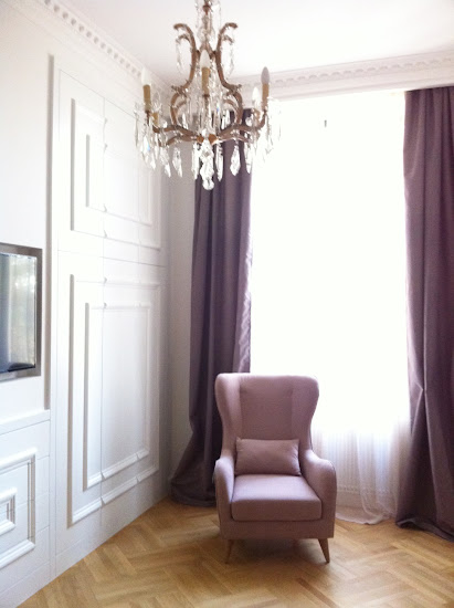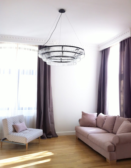 Még egy jó pár bútor nincs a helyén, nem is beszélve a szőnyegekről és egyéb kiegészítőkről, de azért már most imádnivaló. Szerintem. Tegnap függönyöztük. A fényképekkel ellentétben a függöny a valóságban nem lila. Beiges-szürkés-barnás. De a kanapé tényleg rózsaszín! :)