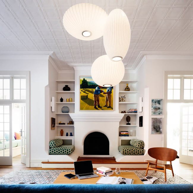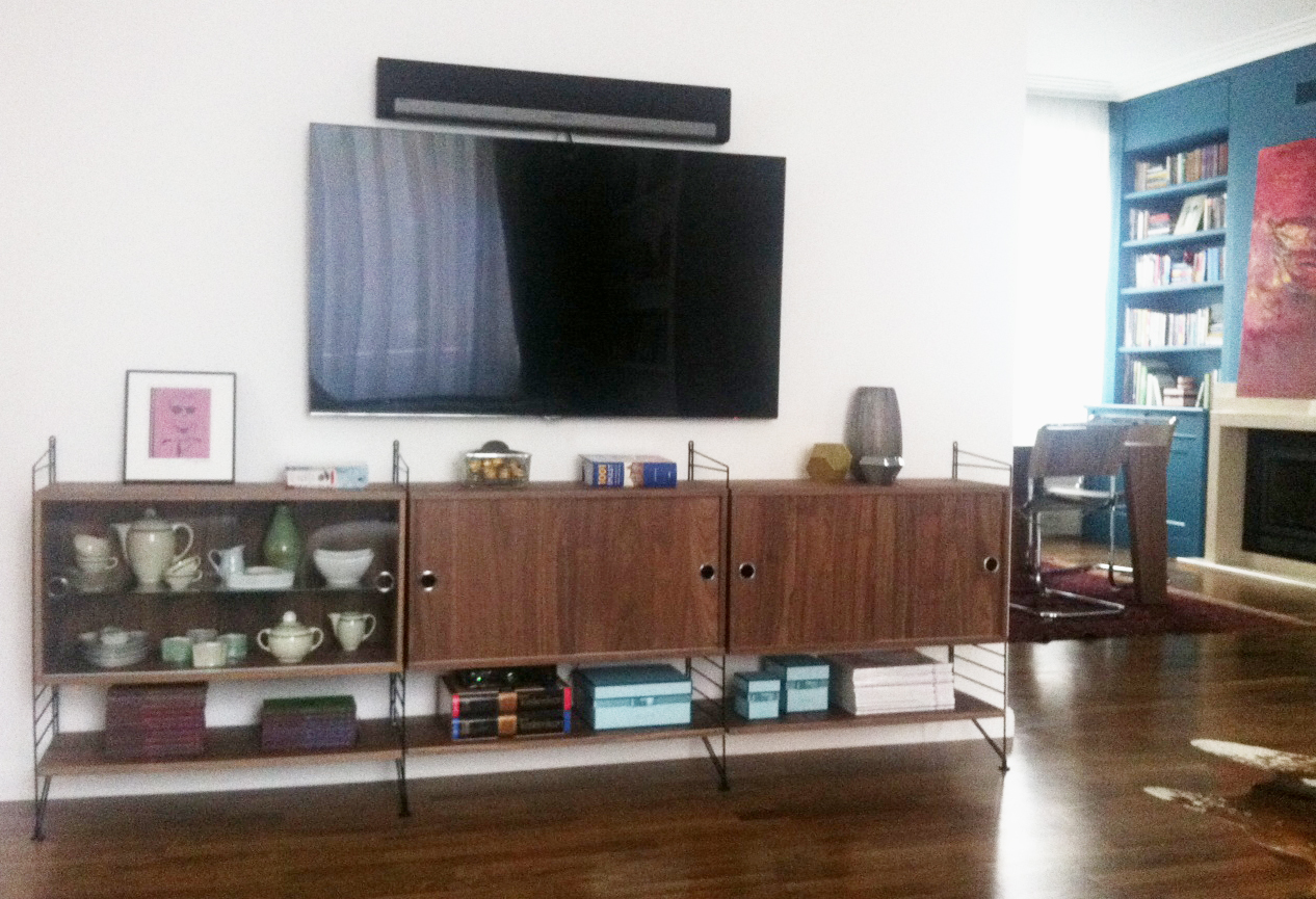 A kazettás álmennyezet olyan adottság volt, amelytől nem lehetett megszabadulnunk… A kezdeti szontyolgás után előnyünkre fordítottuk ezt a (dizájn)hátrányt, és egyes kazettákat textillel, és műfűvel vontunk be, így szerintem igazán mozgalmas mennyezetet sikerült létrehozni, amely tök jól reflektál az alatta lévő eseményekre.