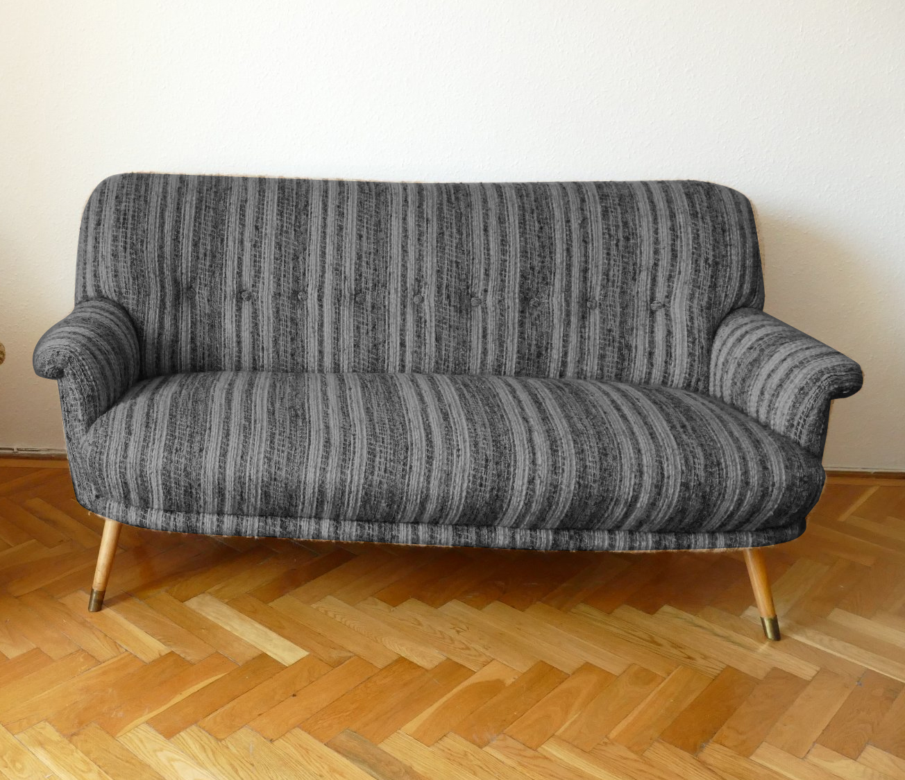 Azt hiszem a lakás képein szereplő darab igazi régi kanapé lehet, csodásak a fa lábak ezzel a szögletes formával. Én nézegettem a neten, és teljesen beleszerettem egy kanapéba (ITT), amelyhez három gyönyörű fotelt is adnak. Az egész együtt csak 85.000 Ft. Igaz, most nem szürke (beige - csak átszíneztem…:)), de egy kárpitozás csodákat tehet.