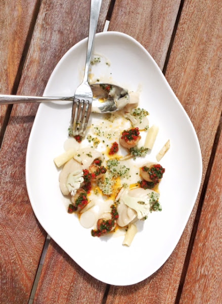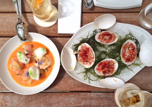 Aztán mi három előételt is megosztottunk… Egy - a ház különleges módján elkészített - perui specialitást, a cebichet, ami nyers halból készül, egy kagylós kompozíciót,...