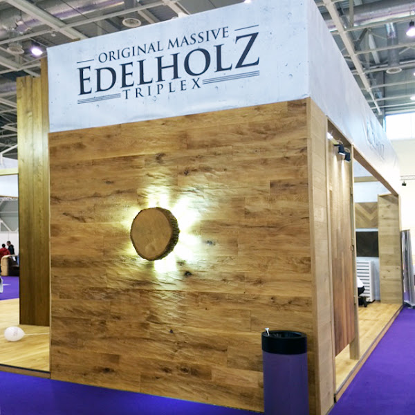 Az Edelholz standját kívülről csodálatos, struktúrlt felületű parkettával vonták be. Többször elmentem mellette, és mindig rácsodálkoztam a szépségére.