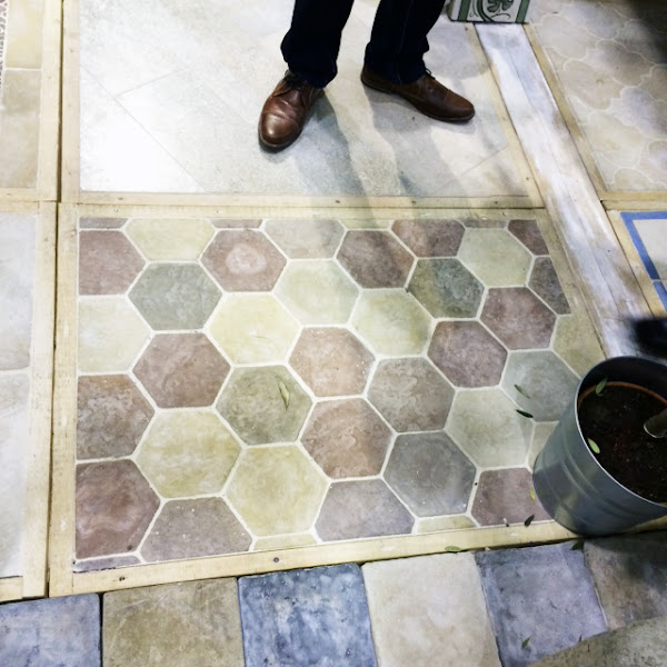 Na, de elhagytam a "Jövő konyháját" és megérkeztem másik régi kedvencemhez, az Otti Burkolathoz, aki most nem csak a szokásos szépségekkel jelent meg (kerti kutak, kőpárkányok, oszlopok, stb…), hanem új, színes burkolatokkal is. Ezek közül ez a hatszögletű minta azért is fogott most meg, mert egy tervező barátnőm pont ilyet keresett a napokban, így át tudtam neki küldeni a fotót…