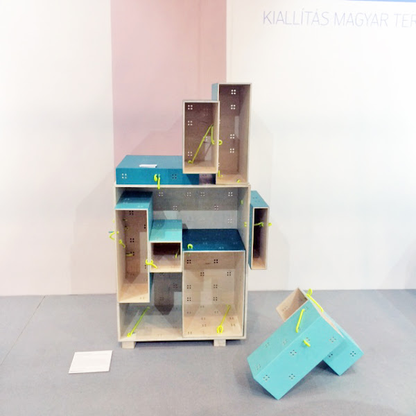 Még mindig a Magyar Design standnál maradva… Novák Gergely (MOME Design Intézet, Formatervező Tanszék) Arnold konceptuális tárolóbútora szerintem zseniális ötlet. Az egyedileg összeválogatott elemekből kötél segítségével mindenki maga építheti meg a számára ideális tárolóbútort.