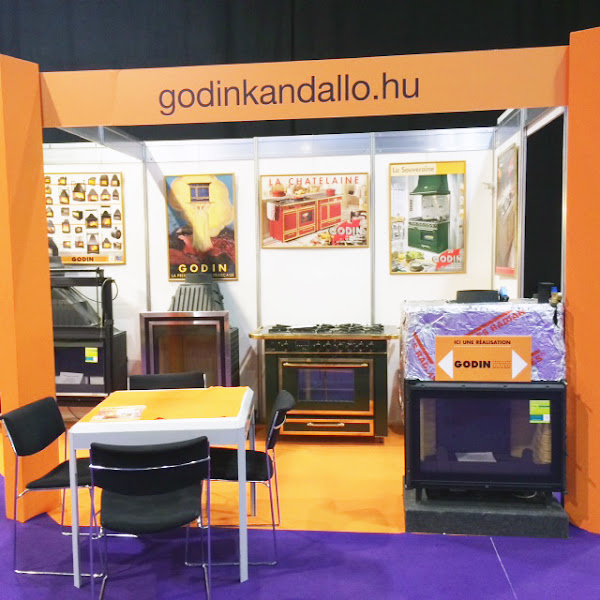 A másik rettenet stand a Godin kandallóé. Ejnye-bejnye! Ilyen igényes terméket ennyire csumpi környezetbe szégyen kiállítani!!! Azért mutatom meg, mert maguk a termékek nagyon igényeksek és szépek. A tűzterek egyszerűek és modernek, a konyhai tűzehlyek pedig inkább klasszikusak, de van finoman modernebb is a kínálatban.
